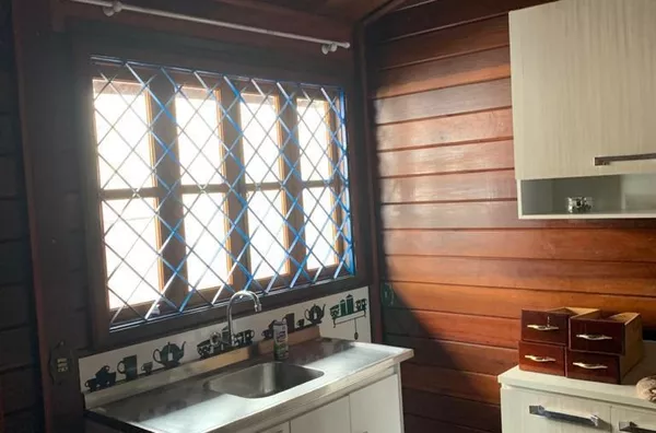 casa de madeira ( 160M2) , com 2 dormitórios, sala, cozinha, wc social. Edículas ( 100M2) com 2 dormitórios, cozinha e wc social.
